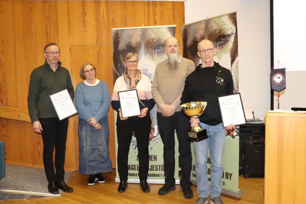 Vuosikokoukseen kuuluu oleellisesti myös ansioituneiden koirien ja beagleharrastajien palkitseminen. Kuvissa palkintojen saajat tuloksineen. Kaikki jaetut palkinnot on lisätty myös Palkitut-sivun listoille. Näiden lisäksi palkittiin vuoden paikallisyhdistyksenä Keski-Pohjanmaan Beaglekerho. Onnittelut kaikille menestyneille!